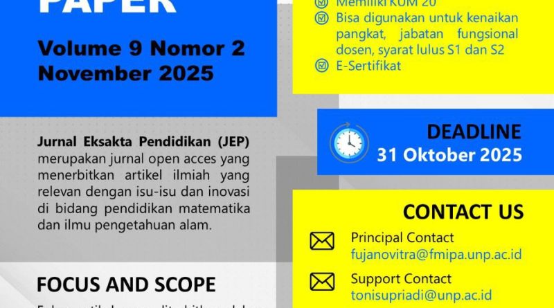Read MoreKunjungi dan Submit: https://jep.ppj.unp.ac.id/index.php/jep/index+ Note: 1. Jika di dalam artikel yang disubmit memiliki afiliasi internasional atau ada author yang berasal