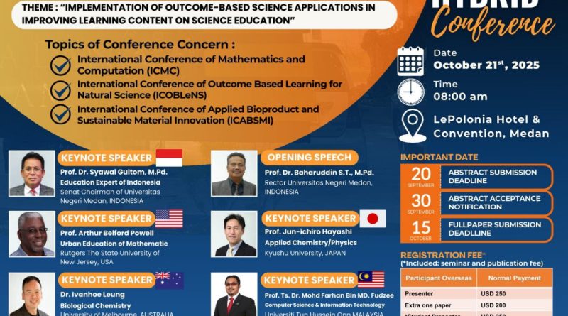 Read MoreFMIPA Unimed, proudly present AISTSSE 2025 The 12th Annual International Seminar On Trends In Science And Science Education Tuesday, October